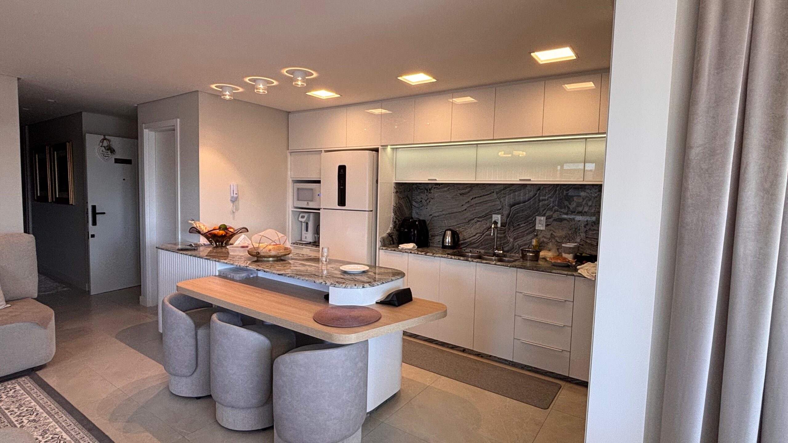 Apartamento totalmente mobiliado e equipado no coração de Itajaí. Unindo elegância e conforto em cada detalhe em um empreendimento novo. O living integrado com a sacada e com vista, oferece amplitude e leveza. A cozinha, funcional e com acabamentos de qualidade e marcenaria planejada, alia praticidade e elegância. A planta bem distribuída, em prédio com lazer, é ideal para quem valoriza conforto, privacidade e a praticidade de ter comércio e serviços sempre por perto. 93m2 | 2 suítes | 2 vagas Apenas 3 apartamentos por andar