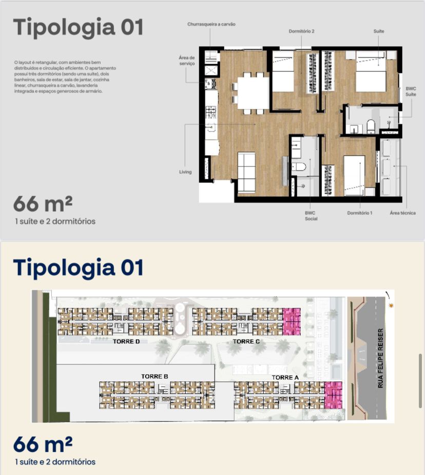 Apartamento Tipo3 dormitórios Planta3 Dorms.1 Suítes1 Vagas66m² ÁreaR$ 713.000 A partir deApartamento Tipo3 dormitórios Planta3 Dorms.1 Suítes1 Vagas66m² ÁreaR$ 713.000 A partir de |