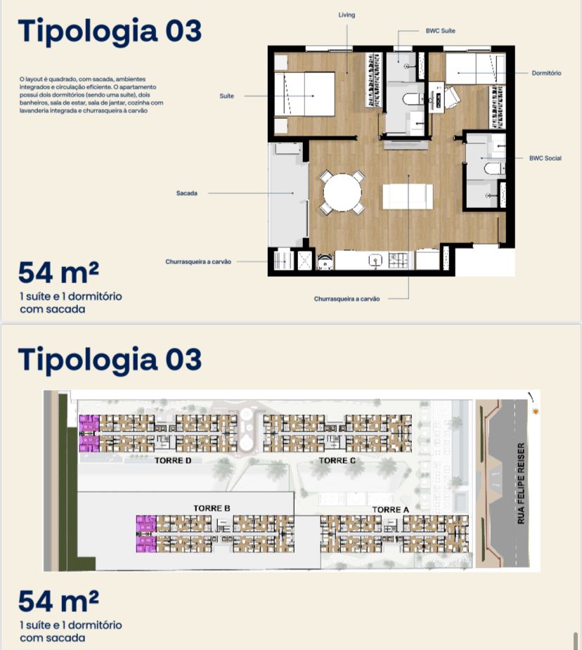 No coração de Itajaí, nasce o Portovelas, projeto da Lotisa que reúne conforto, lazer e as conveniências da vida urbana, reafirmando a vocação da cidade para qualidade de vida e prosperidade. O Bairro São João reúne o essencial para morar bem. É uma região muito bem localizada, com acesso privilegiado aos principais eixos da cidade, com estabilidade urbana e historicamente imune a alagamentos. Características Gerais Área do Terreno: 10.727,44m² Área de Lazer: 8.562,41m² 04 torres de 15 pavimentos cada, sendo: 12 apartamentos por andar: 03 Dormitórios (1S + 2D) 02 Dormitórios (1S + 1D) 03 pavimentos de embasamento, sendo: - 09 salas comerciais no térreo - 03 pavimentos com vagas de garagem - 01 pavimentos com áreas de lazer - 04 elevadores sociais por torre - 02 elevadores exclusivos, do térreo ao lazer - Espaço para Mini Market - Bicicletário - Lavanderia - Espaço pet O projeto de interiores das áreas comuns do Portovelas é assinado pela escritório de arquitetura Casabá, aqui tudo foi pensado para estender a sensação de lar aos espaços coletivos, alinhado ao conceito de well living. Com ambientes voltados à saúde, ao bem-estar e à convivência — como spa, piscinas, horta, pomar, biblioteca, sala de histórias e ateliê —, privilegia ergonomia, luz natural, integração com a paisagem e acessibilidade para todas as idades, promovendo conforto, segurança e experiências de descanso, cultura e socialização. Lazer: - Piscina com raia semiolímpica - Piscina infantil - Piscina aquecida - Sauna úmida - Sauna seca - Duchas - Sala de Massagem - Studio de Beleza - Áreas spas/Jardins “ofurôs” - Guarda-volumes – área piscinas - Bar esportivo 1 - Bar esportivo 2 - Ateliê de artes - Espaço infantil (teatro e cinema) - Biblioteca - Pomar - Oficina de jardinagem / trabalhos manuais - Jogos de tabuleiro ao ar livre - Lounge Externo - Horta - Quadra infantil poliesportiva - Meia quadra de basquete - Pista de skate - Jogos coberto / aberto - Espaço pizza - Salão de festas - Praça de fogo - Pub - Bar - Espaço gourmet - Espaço gourmet c/ churrasqueira - Brinquedoteca Baby - Salão de jogos - Playground - Brinquedoteca infantil - Academia externa - Academia funcional externa - Salão multiuso (dança / yoga) - Academia - Pista corrida “tiro” - Quiosque Tipologias de Apartamentos Todas as tipologias priorizam ambientes integrados favorecendo iluminação natural e conforto térmico. As plantas foram desenhadas para otimizar o uso do espaço, com áreas de estar e cozinha conectadas e dormitórios bem posicionados. Tipo 1 - 1 suíte + 2 dormitórios | 66m² O layout é retangular, com ambientes bem distribuídos e circulação eficiente. O apartamento possui três dormitórios (sendo uma suíte), dois banheiros, sala de estar, sala de jantar, cozinha linear, churrasqueira a carvão, lavanderia integrada e espaços generosos de armário. Tipo 2 - 1 suíte + 1 dormitório | 50m² O layout é retangular, com ambientes integrados e circulação eficiente. O apartamento possui dois dormitórios (sendo uma suíte), dois banheiros, sala de estar, sala de jantar, cozinha em “L”, lavanderia integrada e uma área de home office. Com orgulho de pertencer a Itajaí (SC), a Lotisa transforma o conceito de morar bem com inovação, qualidade superior e detalhes que fazem a diferença. Cada empreendimento é pensado para elevar o padrão de vida, utilizando materiais vanguardistas e soluções arquitetônicas que garantem bem-estar e a qualidade de vida dos nossos clientes. Registro de Incorporação R-1-80471